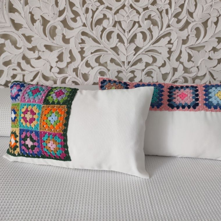 Cojín blanco de crochet
