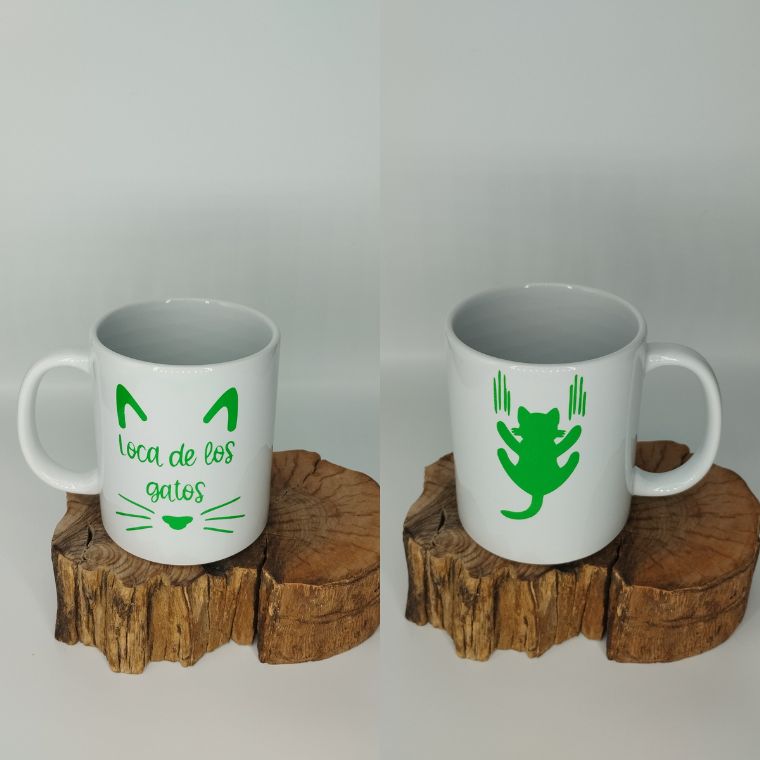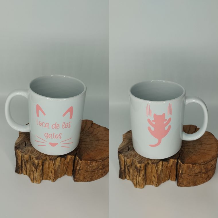 Taza blanca con diseño: Loca de los gatos. Diseño sublimado apto para lavavajillas y microondas. Capacidad de 350ml.